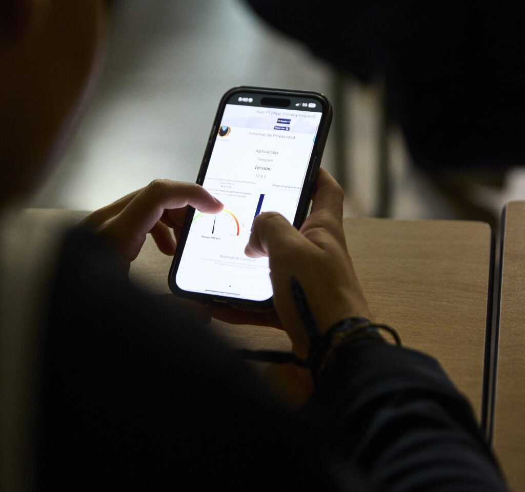 The main objective of the workshop was to explain to students how their personal data is managed and protected when they use mobile applications to browse more safely in the digital environment. To this end, concepts related to digital privacy and personal data protection, mobile application permissions, and how to grant or deny them in an informed manner were addressed.