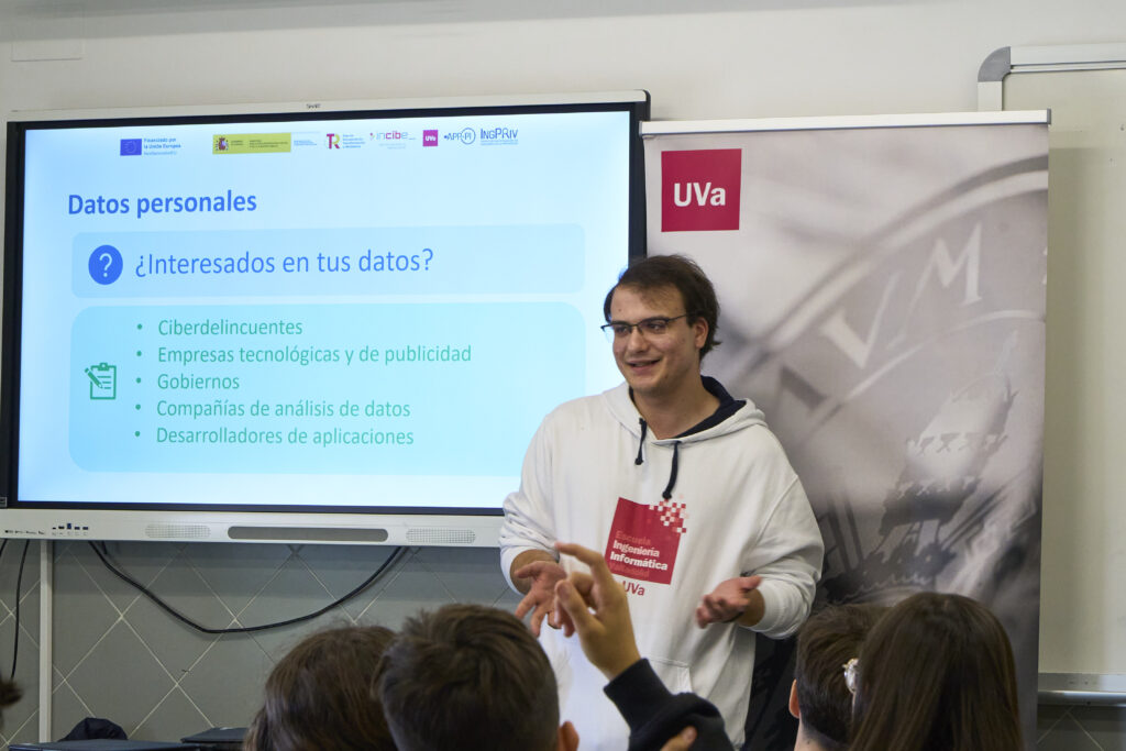 Los días 12, 13 y 14 de noviembre de 2025, miembros del Grupo de Investigación en Ingeniería de la Privacidad (IngPriv) de la Escuela de Ingeniería Informática de la Universidad de Valladolid impartieron varios talleres de privacidad digital a un total de 82 alumnos de 3º de la ESO del IES Julián Marías de Valladolid.